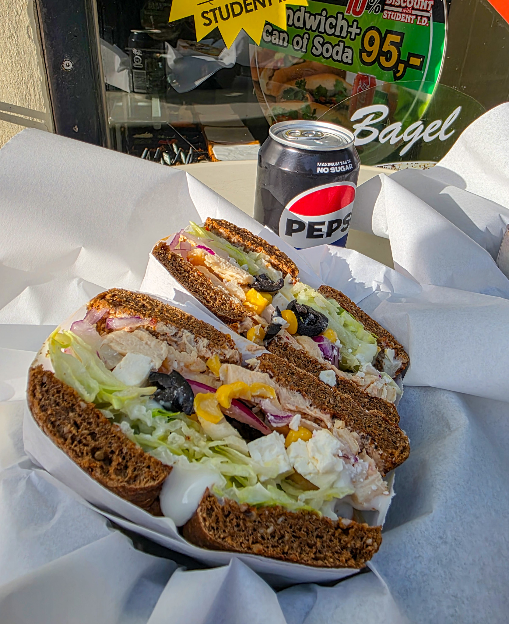 Vis dit studiekort, og få 10% rabat på hele din bestilling – uanset om du vælger bagels, sandwich eller salat. Kom forbi os og nyd god mad til en god pris – både til spis her og takeaway.
